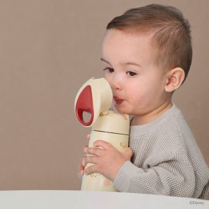 飲み口は角度のついたストローで、幅広い年齢の子供たちがくわえやすく、飲みやすくなっています。シンプルなデザインで子供たちだけでなく、親子でも使っていただけます。