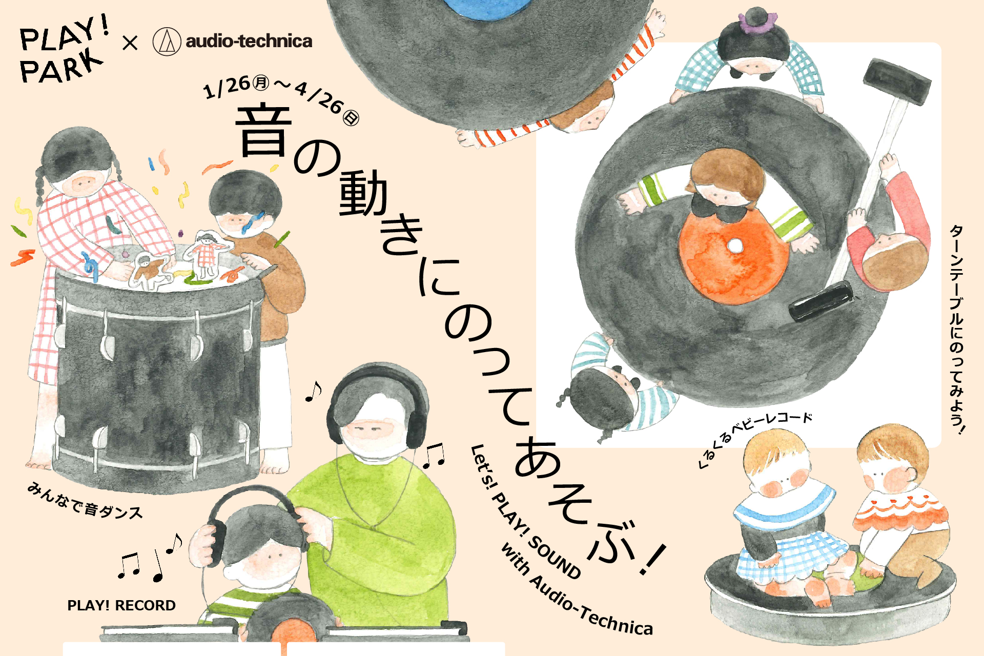 音響メーカーのオーディオテクニカとPLAY! PARKによるコラボレーション企画は、2022年よりスタートし、これまでレコード盤や日用品を使った遊具を通して、アナログな音に触れる体験を提供してきました。