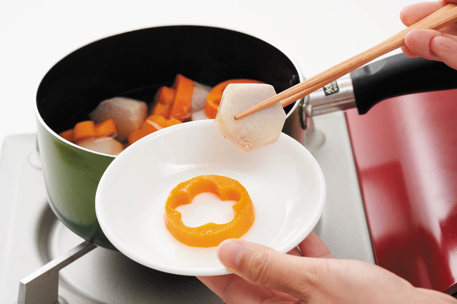 ②鍋に(①)とだし汁を入れ、やわらかくなるまで煮る。