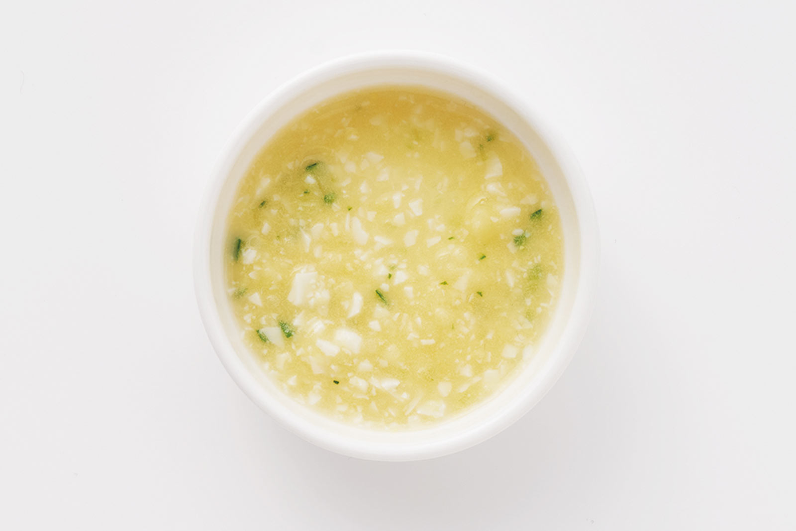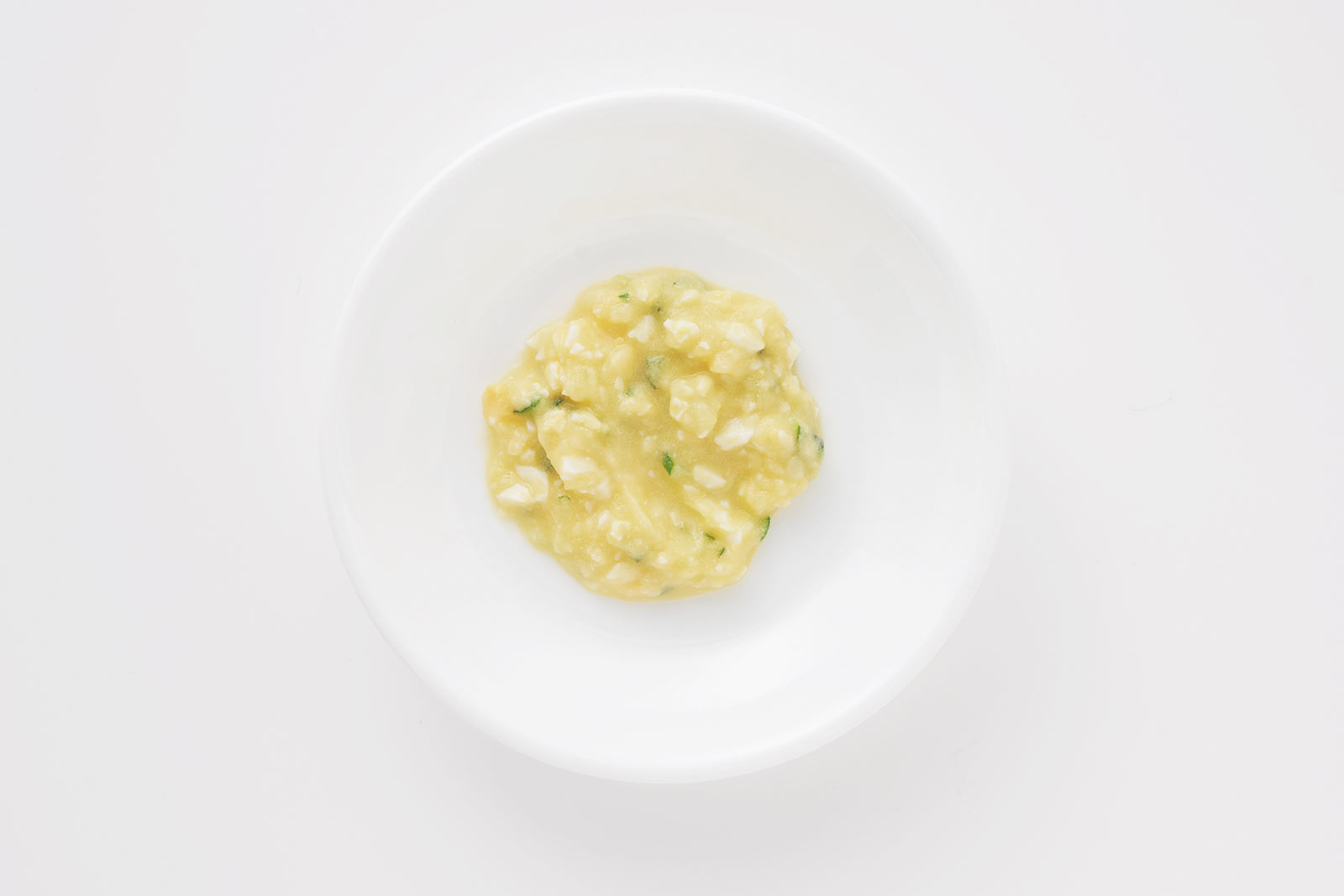 みじん切りにしたサラダ(小さじ1)に、湯(小さじ1)を加えてのばす。耐熱容器に入れ、ふんわりラップをかけて、電子レンジで10秒加熱する。